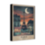 For those with a sense of nostalgia and the vintage artwork produced many years ago as well as those with a love for travel or Paris itself, this canvas print will be sure to bring pleasure. With its vivid colours and the imposing image of the Eifel Tower at night with quaint Parisian buildings in the foreground, this is sure to grace any wall.
